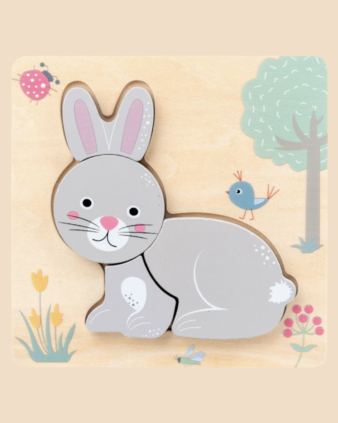 We kiezen voor stevig berkenhout dat tegen een stootje kan - want we weten hoe enthousiast kleine puzzelaars kunnen zijn. De stukken zijn dik genoeg om makkelijk op te pakken en stevig genoeg om niet te buigen. De illustraties zijn vrolijk en gedetailleerd - elk dier in een eigen wereld met boompjes, bloemen, wolkjes en vriendjes. De achterkant van het bord heeft een lichte kleur zodat de vormen goed zichtbaar zijn. En het allermooiste? Er zijn vier verschillende puzzels, dus er is altijd afwisseling! 🐰🦆🐑🐄